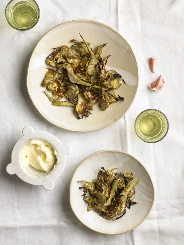 Artichoke Chips with Rosemary Saffron Mayo—Learn how to prepare artichokes with a dish featured in Camila's cookbook.